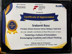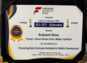 - Mrs. Srabanti Basu, Principal of Johnson Grammar School, Mallapur, was awarded as the "Effective Principal 2024" by Education Today for her exemplary contribution in the field of education.